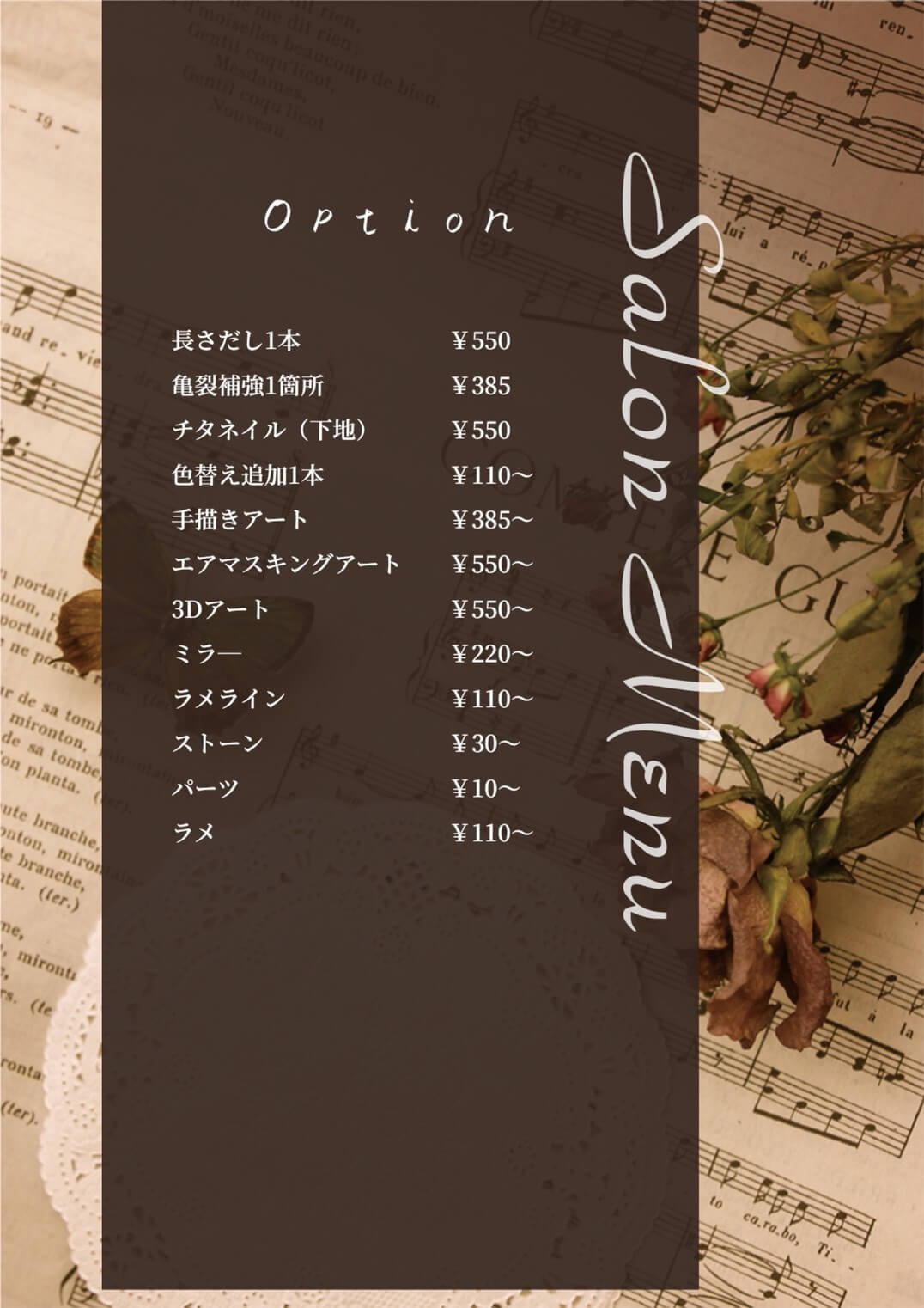 初回ジェルオフ&ケア無料、4週間以内の付け替えでオフ&ケア無料、ポイント・バースデー割、ドリンクサービスなど、長く通いやすい仕組みをご用意。