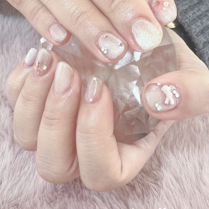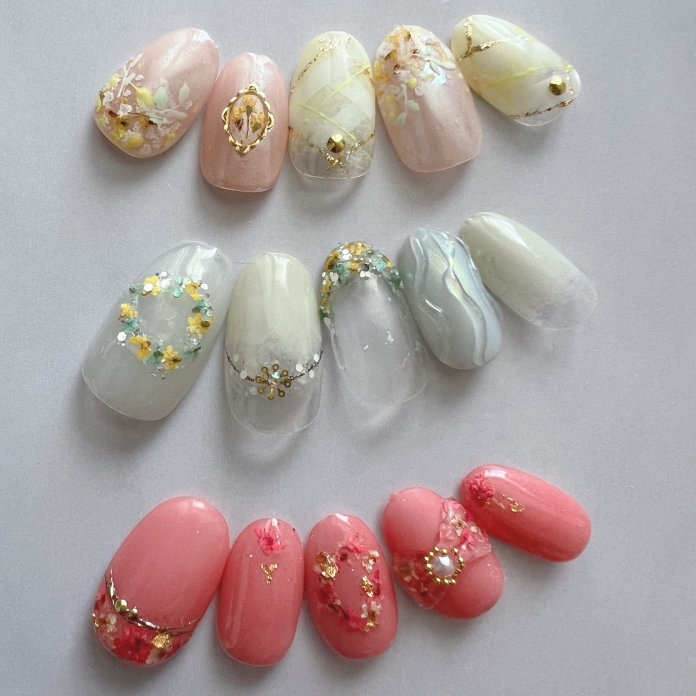 艶とフォルムにこだわるジェルはもちろん、ニュアンス・フラワー・エアジェルなど繊細なデザインが得意です。